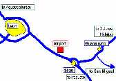 The airport is located (2100N, 10129W, 5548 feet) 15 mi (25 km) away from