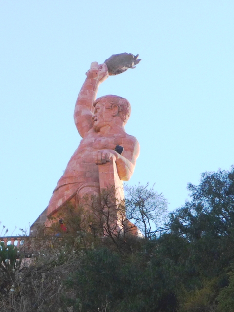 Esta colosal figura levantada en el Cerro de San Miguel en memoria del famoso insurgente que incendiara el 28 de septiembre de 1810 el portón de la Alhóndiga de Granaditas es diseño del escultor Juan Fernando Olaguíbel.