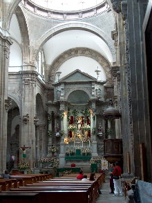 Al fondo de la nave del lado izquierdo está el acceso al tesoro artístico de este templo...