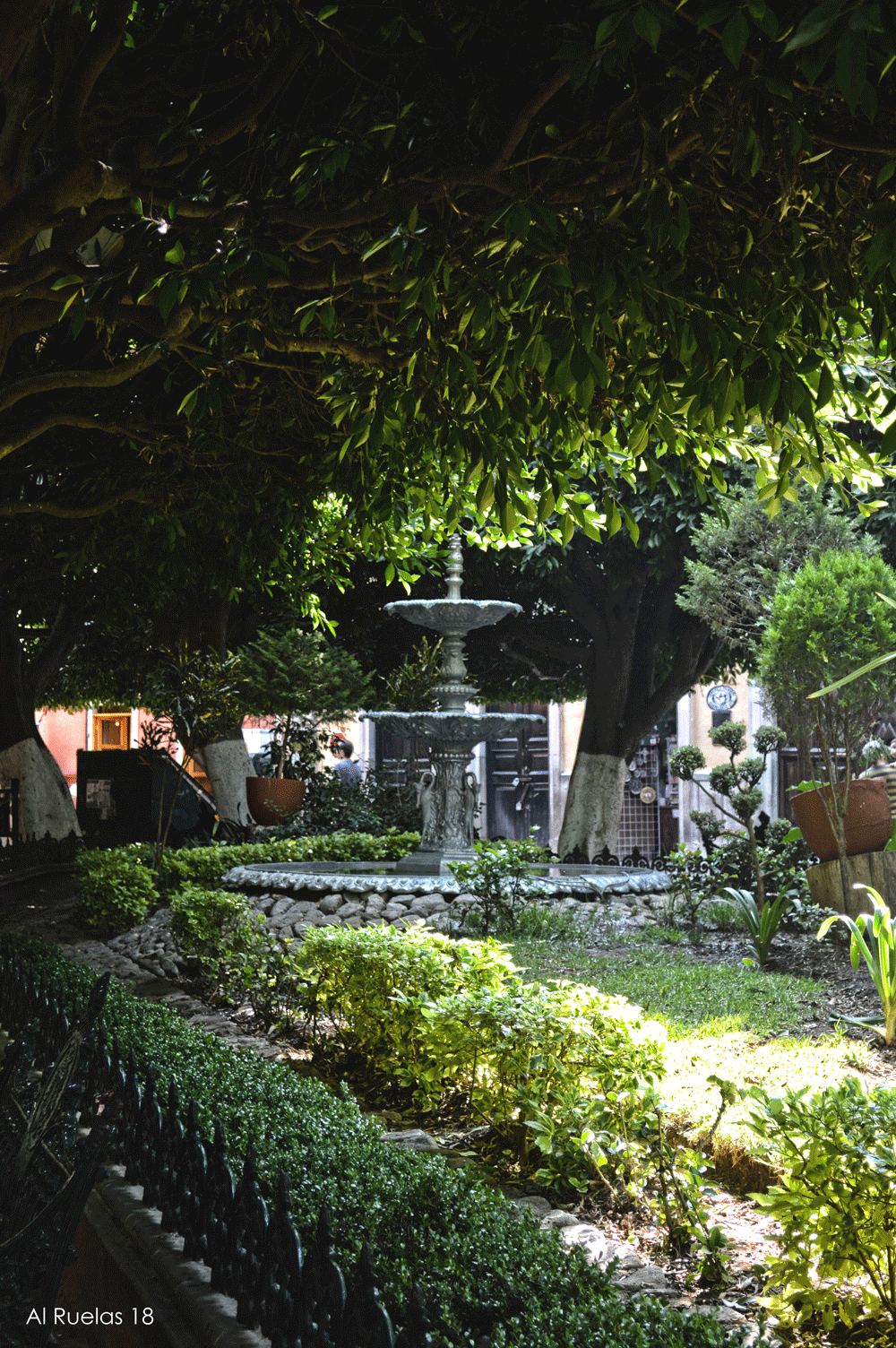 De este punto, nos pueden atraer el pequeño parque, los cafés, y el ambiente, pero vamos, nos falta una escala en nuestro recorrido, para ganarnos un descanso.Entre la casa de moneda que acabamos de visitar y el Teatro Juárez seguimos una pequeña calle bloqueada en parte por un café, para llegar al fondo donde tomaremos en viaje redondo...